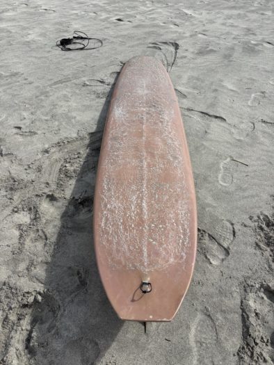 今回は波に乗ったあとに立つ時のアドバイスです。波に押され始めてテイクオフしたら、焦らずに両手で胸の横ではなく、もう少し腰よりに手をつきます。胸の横だと初心者のイメージだと前についてパーリングか膝をつくか、立てません。手を腰寄りにつくと上体をスッと起こすことができます。次に前足をおへその下あたりへ滑らせ、両足を肩幅に開いて立ち上がるようにします。クラシックスタイルであれば、肩幅より狭くてもいいかもしれません。ロングボードは浮力が大きく安定性がありますが、陸上でのテイクオフ練習や、目線を前に向ける意識が上達の鍵。この前というのは真っ直ぐ岸の方ではなく、進行方向です。波の力を感じながら、リラックスして立つことを意識しましょう。正しいフォームとタイミングを身につければ、ロングボードサーフィンは格段に安定します。陸上で立ってる姿を確認するといいと思います。自分の目指す立ち姿の人を探してクセになるくらい真似してみましょう。