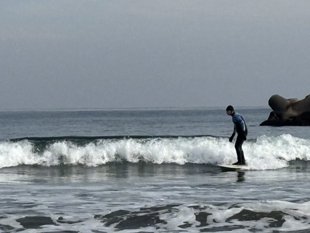 寒い中参加ありがとうございます。水温は冷たいですが、海にはサーフィンが大好きな人がたくさんいますね。