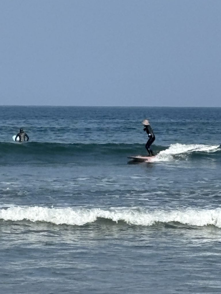 ロングボードの基本はクロスステップですが、最初は無理に大きく交差しなくてOK。